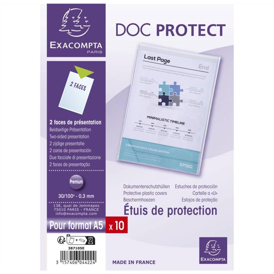 Sachet de 10 étuis de protection simples PVC Haute Qualité 30/100e - A5 Etui 2 faces pour protéger des documents au format A5. Qualité premium pour un usage intensif.