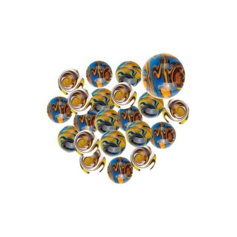 20 BILLES + 1 CALOT DIABOLIC Attention, précautions concernant l'usage de cet article : * Article conseillé à partir de 3 ans. * En cas d'utilisation par des enfants en bas âge : - usage familial conseillé en présence des parents - retirer et jeter l'emballage avant toute utilisation - il est possible que cet article contienne des petites pièces amovibles succeptibles d'être ingérées et de provoquer un étouffement
