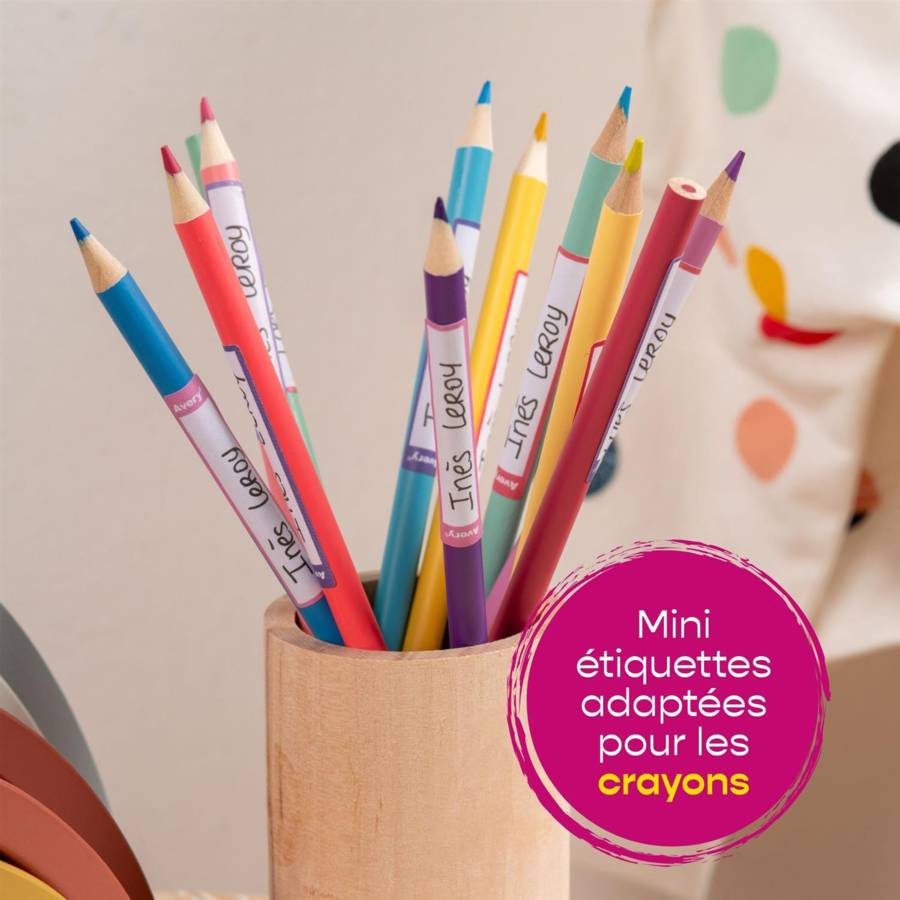 Découvrez les étiquettes autocollantes résistantes Avery, spécialement conçues pour répondre aux besoins exigeants de la rentrée scolaire et pour assurer un marquage efficace de toutes vos fournitures scolaires. Avec un design attrayant, ces étiquettes scolaires personnalisées sont idéales pour identifier stylos, crayons, et feutres. En format compact de 50 x 10 mm, elles s'adaptent parfaitement à tous les types de stylos, qu'il s'agisse de stylo 4 couleur, crayon de couleurs...
