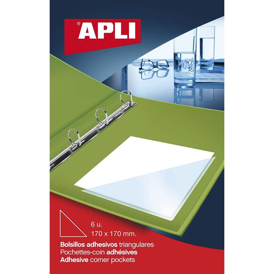 Sachet de 6 pochettes triangulaires adhésives 170 x 170 mm transparente