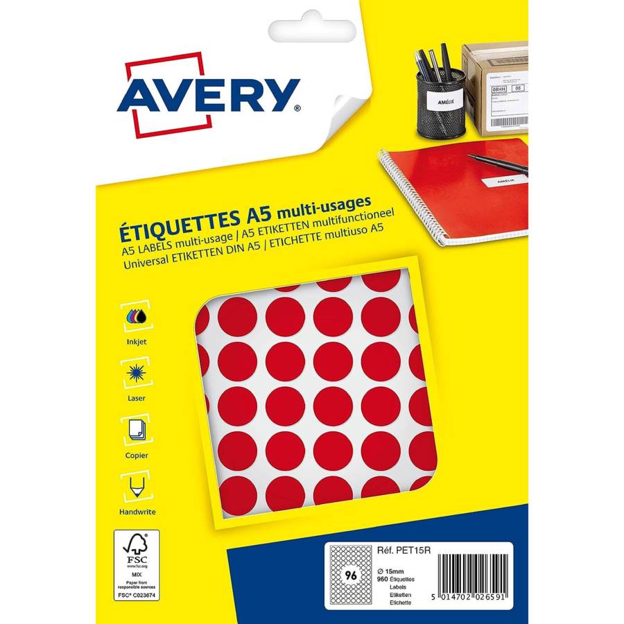 Découvrez toute la gamme Avery en pastilles adhésives sous différentes couleurs et formats.