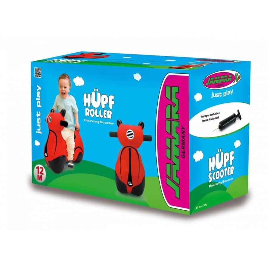 Bouncing scooter Réf. 460572 Âge: 1+ Highlights: - Favorise le sens de l‘équilibre et les habiletés motrices. - Guidon servent de support à l‘enfant - Robuste et résistant - Entretien facile - Charge maxi. jusqu‘à 50 kg Contenu du kit: - Modèle - Pompe - Notice Accessoires recommandés: - Pompe à air avec aiguille, Réf. 412780 Données techniques: Dimensions ~500x260x410 mm Poids ~ 1350 g
