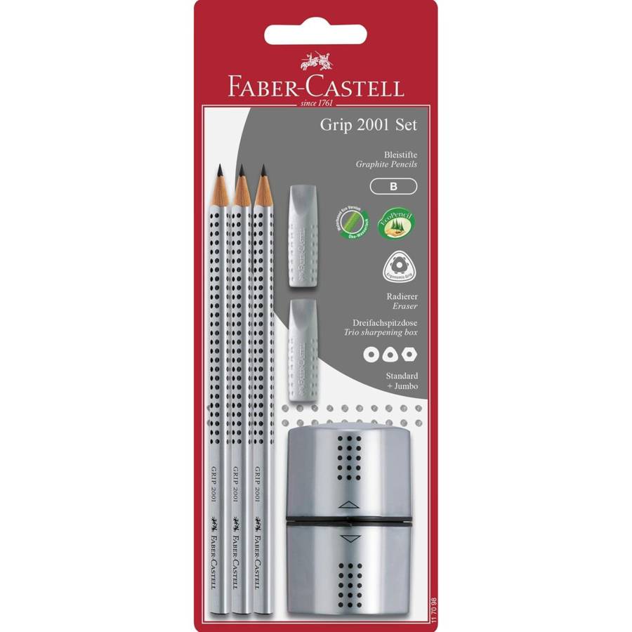Set 3 Crayons Graphite Grip 2001 - B - 2 Gommes Capuchon - Taille-crayon Grip Trio