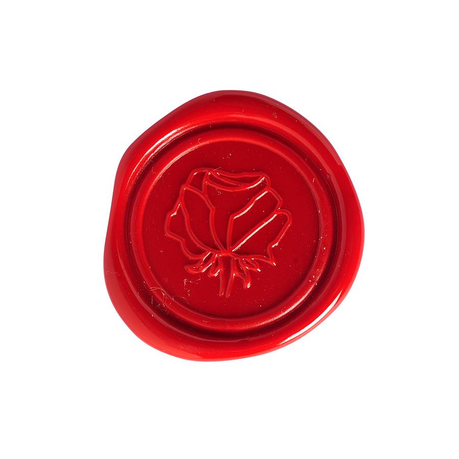 Set cire traditionnelle- rose Un set idéal pour s'initier à la cire, comprenant: 2 bâtons de cire à mèche, 1 manche en bois, 1 sceau motif rose 24 mm, 1 notice