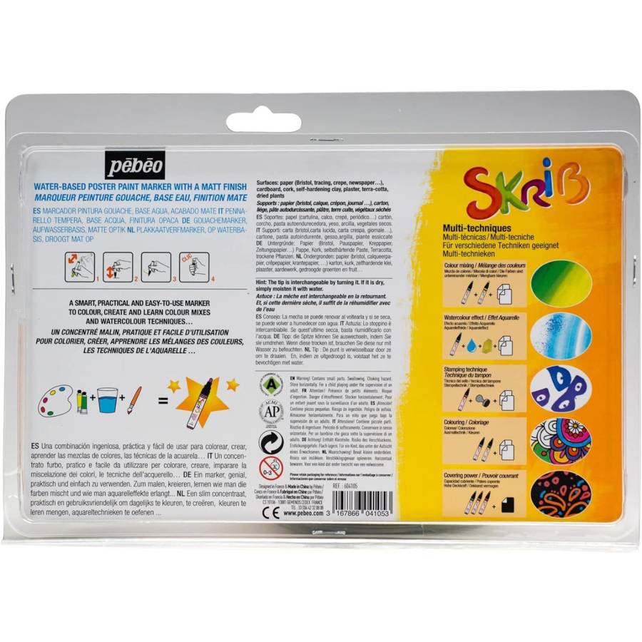 supports : papier, carton, bois, coquillage, liège, pâte autodurcissante, plâtre, terre cuite.accessoires : tampon mousse, pochoir base eau, finition mate, couleurs couvrantes et opaques, miscibles entre elles. séchage rapide. stockage des marqueurs à l'horizontale, bouchon fermé. astuce : vous pouvez appliquer directement les marqueurs pour décorer vos vitres, et les nettoyer simplement avec un chiffon humide. produit de haute qualité