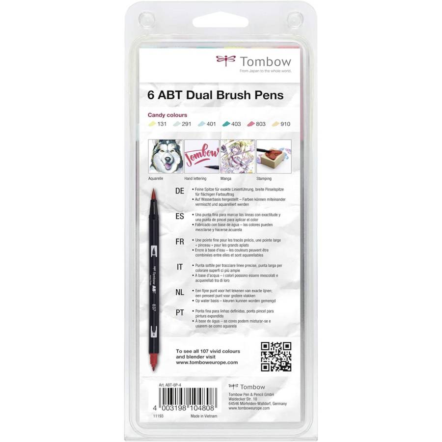 Voir plusAvec deux pointes (pointe pinceau + pointe fine) pour une créativité maximale. Des couleurs à base d'eau pour le lettering, l'aquarelle et l'illustration. 6 sets différents de 6 ABT disponibles Stylo feutre à 2 pointes. La pointe fine (épaisseur de ligne: environ 0.8 mm) est principalement utilisée, lors de l'élaboration de lignes précises. La deuxième pointe est plus épaisse et souple comme un pinceau. L'épaisseur de la pointe varie en fonction de la pression exercée et peut aller jusqu'à environ 10 mm. Disponible en 107 couleurs vives + Blender. À base d'eau - les couleurs peuvent être mélangées et utilisées comme des aquarelles. Parfait pour le lettering, l'aquarelle, les illustrations, la création de cartes, les tampons, les esquisses, les BDs et bien plus. Sans acide, non toxide et inodore. Les couleurs ne sont pas résistantes à la lumière. Les kits disponibles: ABT-6P-1 Primary Colors: 1x ABT-055, -296, -535, -725, -845, -N15 ABT-6P-2 Pastel Colors: 1x ABT-062, -243, -452, -553, -623, -723 ABT-6P-3 Dermatologically tested Colors: 1x ABT-055, -296, -493, -725, -856, -925 ABT-6P-4 Candy Colors: 1x ABT-131, -291, -401, -403, -803, -910 ABT-6P-5 Vintage Colors: 1x ABT-379, -407, -569, -817, -N49, -N52 ABT-6P-6 Gray Colors: 1x N49, N65, N75, N79, N89, N95