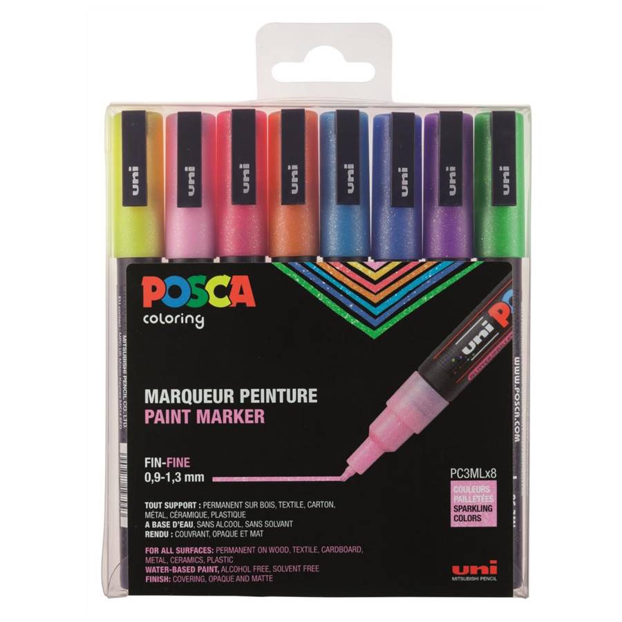 Set de 8 Marqueurs PC3ML pointe conique fine en plastique Pailleté