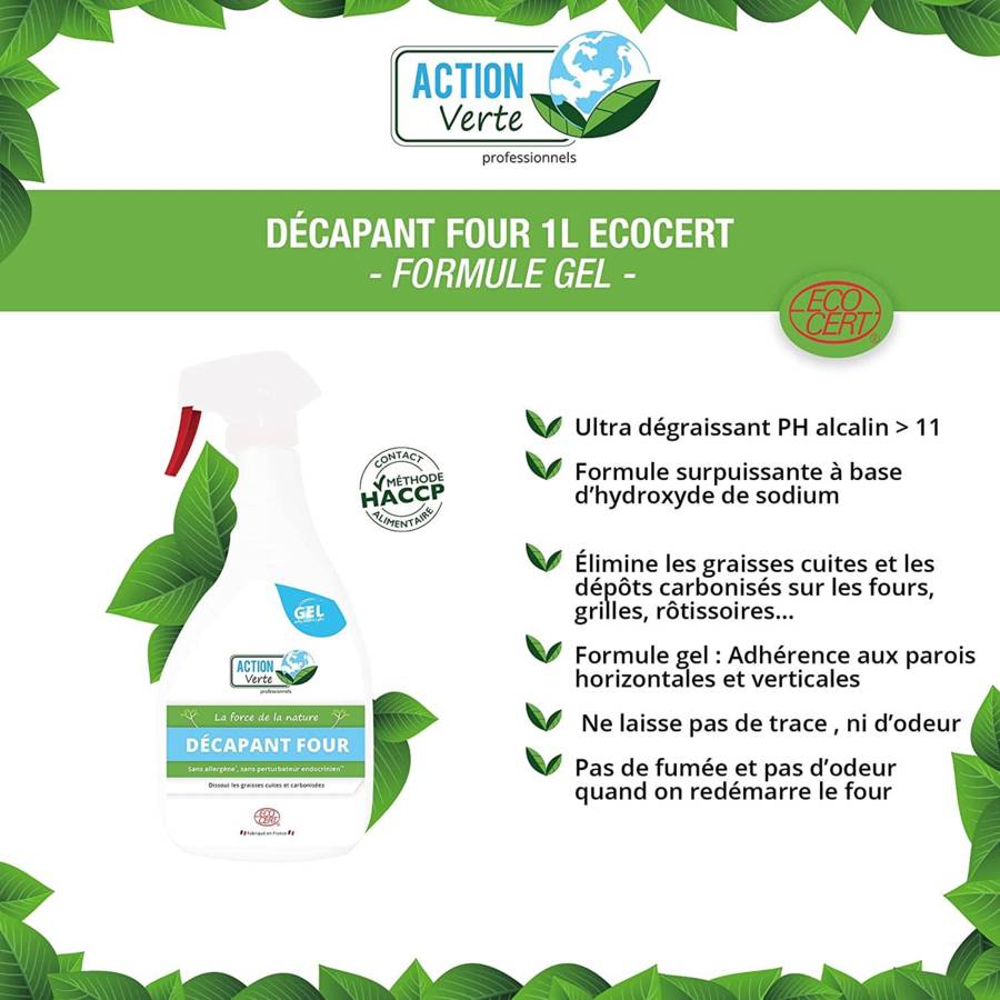 Voir plusDissout les graisses cuites et carbonisées Formule ultra dégraissante d'origine végétale et minérale à base hydroxyde de sodium 99,7% des ingrédients d'origine naturelle Elimine les graisses cuites et les dépôts carbonisés sur les fours, grilles, rôtissoires, sauteuses, friteuses, plaques de cuisson, barbecues, pianos, hottes, inserts… Ne laisse pas de trace blanche et sans odeur Sans colorant, sans allergène, sans conservateur, sans ETDA, sans perturbateur endocrinien (en l'état actuel de nos connaissances) Formule gel : adhère aux parois horizontales et verticales, permet de cibler la surface à traiter Non testé sur les animaux Contact alimentaire Formule Anti Gaspillage : Formule gel permettant une meilleure adhérence aux parois et de dissoudre les graisses cuites et carbonisées Couleur / Aspect : translucide, sans colorant, liquide fluide pH pur : 12.00 l base forte Densité : 1.20+/ 0.01 Certification: Ecocert Contact alimentaire