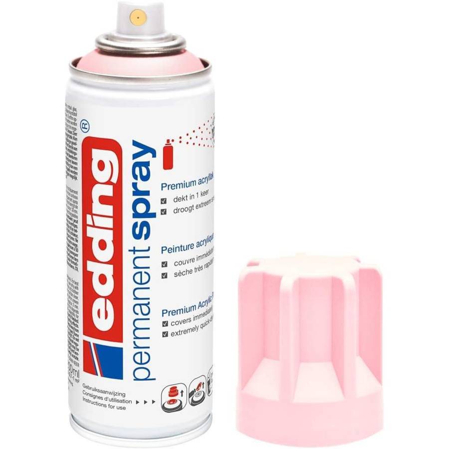 EDDING Spray peinture permanente 200ml rose, pour extérieur et intérieur Peinture acrylique premium avec couvrance immédiate et optimale Pour presque toutes les surfaces : bois, pierre, papier peint, verre, toile, osier, céramique, plastiques peinturables.... Durable à l'intérieur comme l'extérieur Temps de séchage extrêmement court et forte tenue Peinture garantie 100% sans métaux lourds
