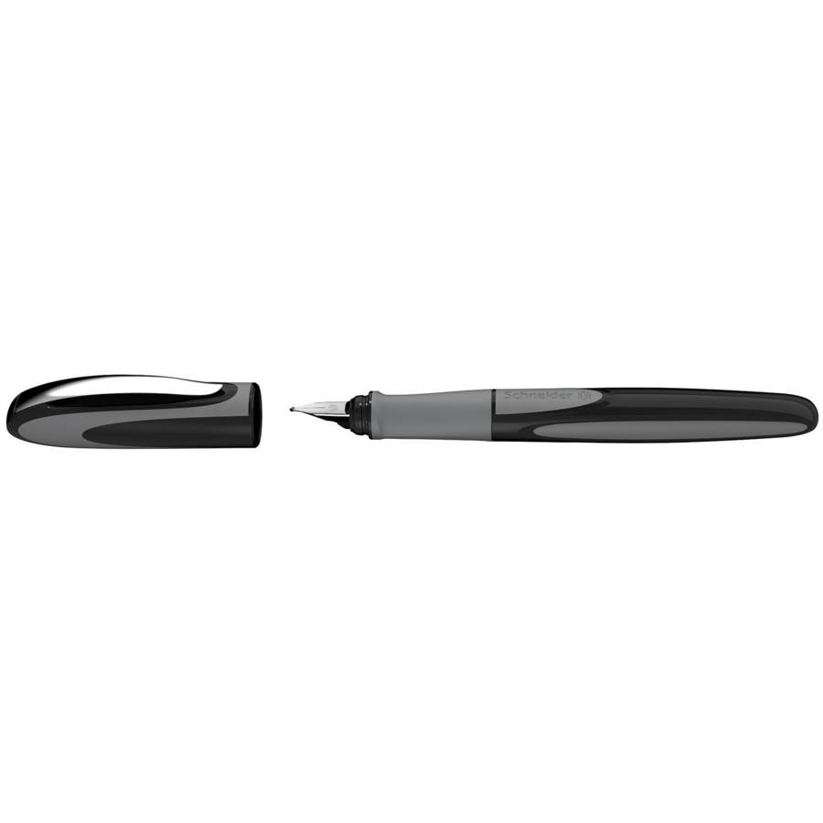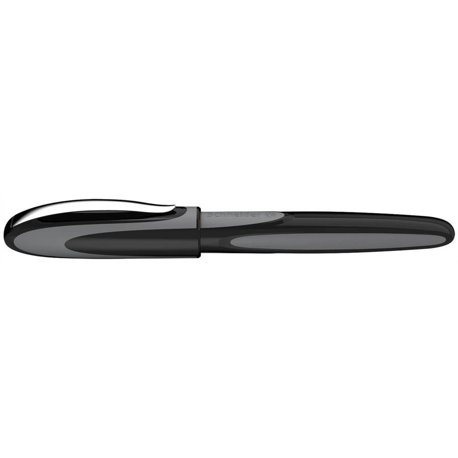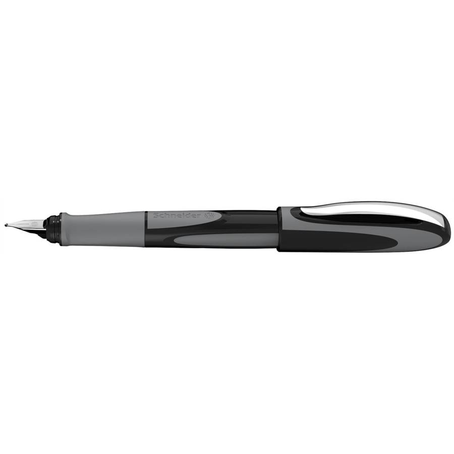 Stylo à plume avec grip ergonomique caoutchouté et plume moyenne M+ en acier inoxydable de haute qualité à pointe iridium. Couleur "onyx". Cartouches d'encre standard, bleu royale et effaçable. Partie avant de rechange est disponible. La plume L de forme inverse est disponible pour les gauchers.