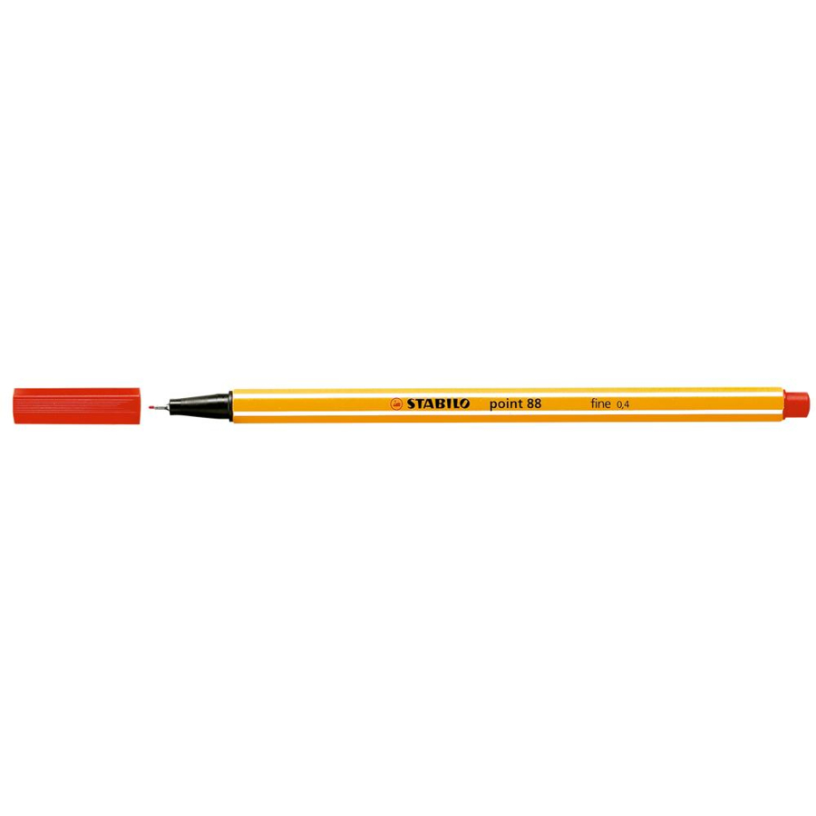 Stylo feutre POINT 88 Pointe fine 0,4 mm Couleur rouge Stylo feutre à pointe gainée métal pour une écriture Fine et Précise Idéal pour les tracés de précision, les graphiques, la cartographie et les prises de notes tout en couleurs Longueur d'écriture = 1000 mètres Forme Héxagonale Capuchon ventilé Largeur de tracé 0,4 mm