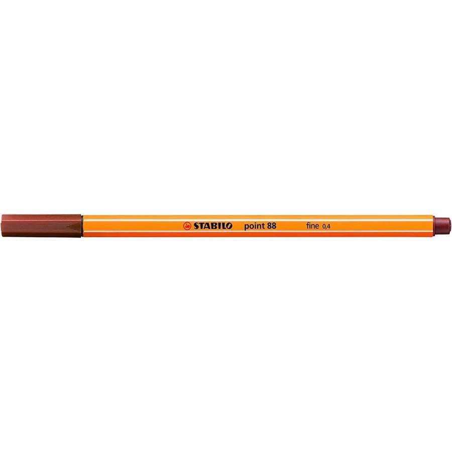 Stylo-feutre STABILO point 88 - sanguine Stylo-feutre à pointe fine, pour une écriture précise (tracé 0,4 mm) Pointe cerclée de métal pour plus de robustesse. Jusqu'à 1 000 mètres d'écriture. Capuchon ventilé Corps hexagonal orange avec rayures blanches : la signature STABILO