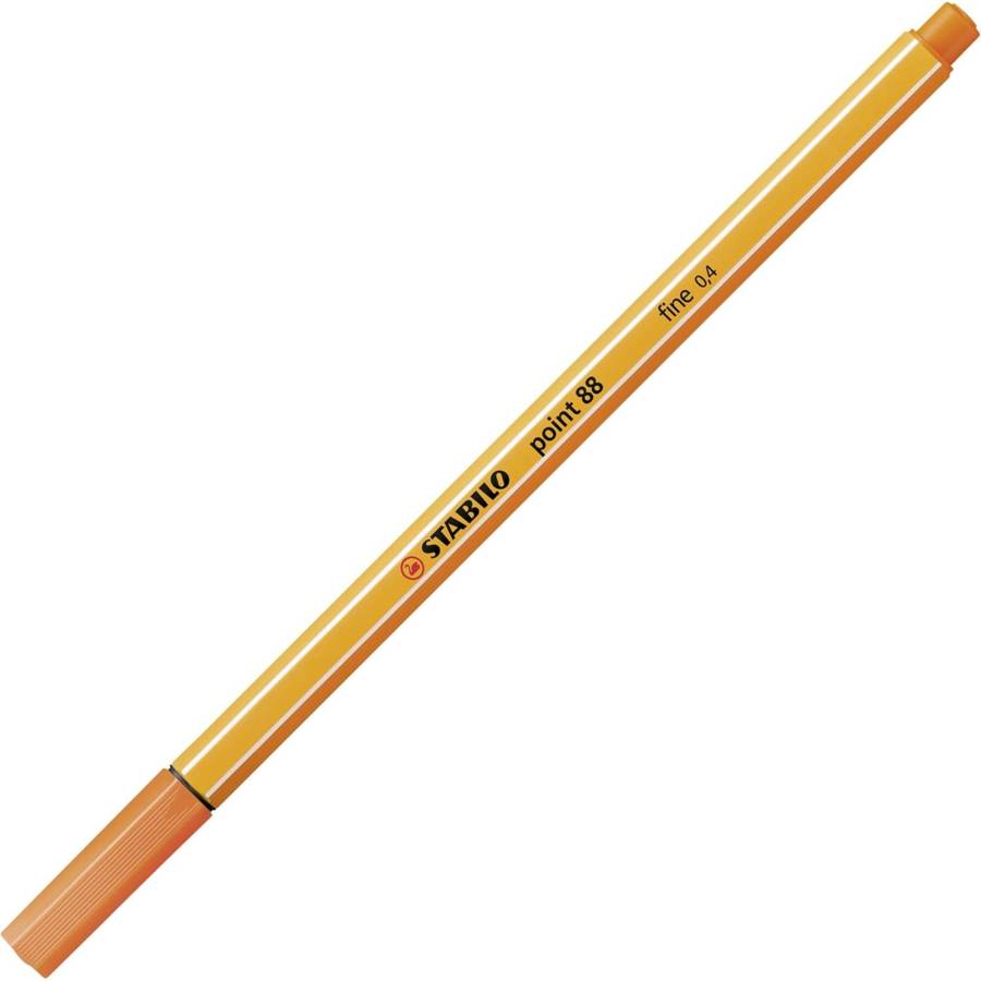Stylo-feutre STABILO point 88 - vermillion clair Stylo-feutre à pointe fine, pour une écriture précise (tracé 0,4 mm) Pointe cerclée de métal pour plus de robustesse. Jusqu'à 1 000 mètres d'écriture. Capuchon ventilé Corps hexagonal orange avec rayures blanches : la signature STABILO