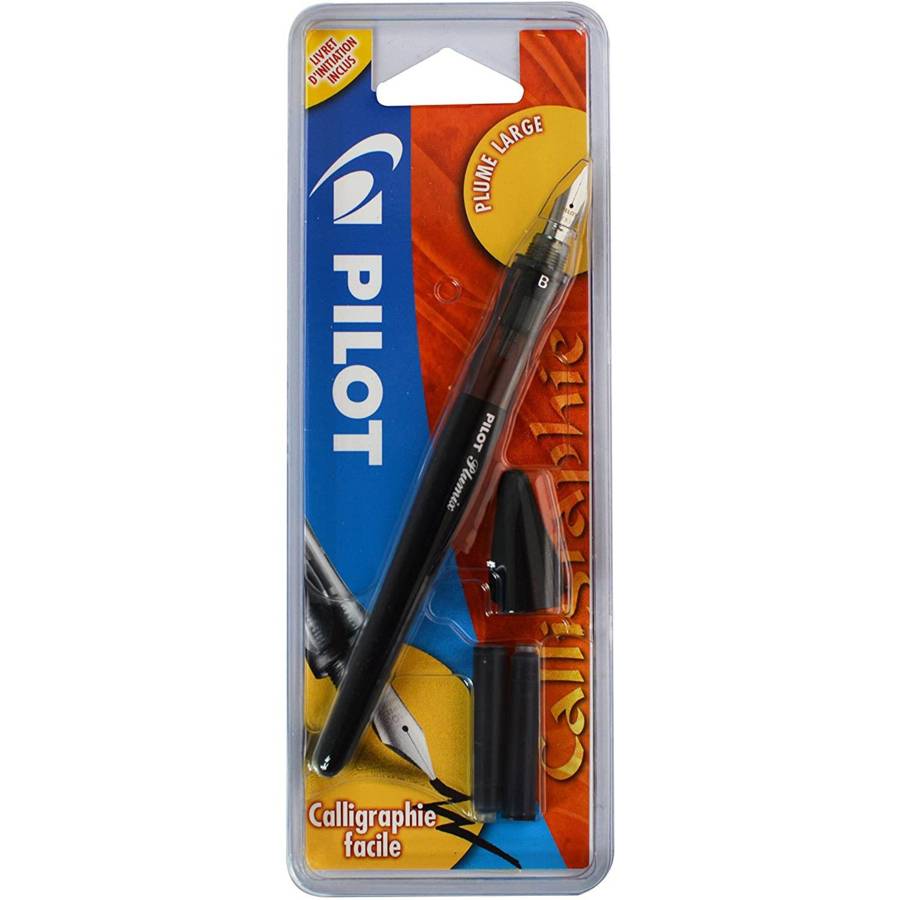Pilot Stylo plume de calligraphie Plumix large, corps noir corps noir, largeur de tracé: 0,7 mm, plume acier biseautée sous blister, inclus 2 cartouches d'encre en noir (600404)