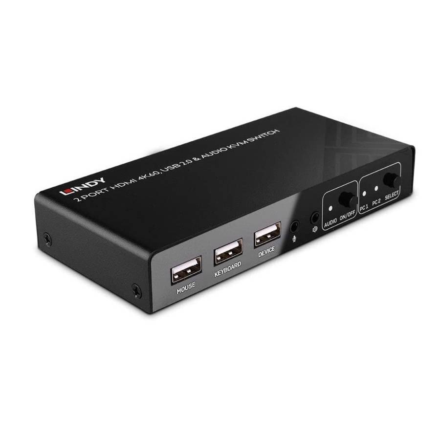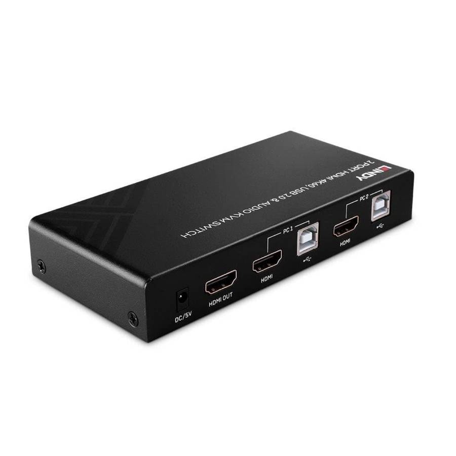 Contrôle deux PC équipés en HDMI à partir d'un clavier, d'une souris et d'un écran Commutation via le bouton poussoir de l'appareil ou les raccourcis clavier Prend en charge les résolutions HDMI 18G jusqu'à 4K@60Hz 4:4:4 avec HDR Ports audio stéréo 3,5 mm pour connecter un microphone, des haut-parleurs ou des écouteurs Garantie 2 ans Le switch KVM 2 Port HDMI 4K60, USB 2.0 & Audio de Lindy est une solution compacte permettant l'accès et le contrôle de deux PC équipés en HDMI...