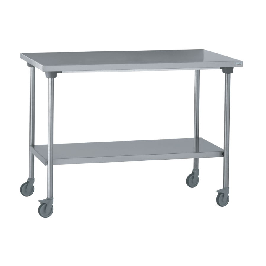Table inox - Largeur L (L=1210-1610mm) - Avec étagère basse, Sur Roulettes - TBEBSRL